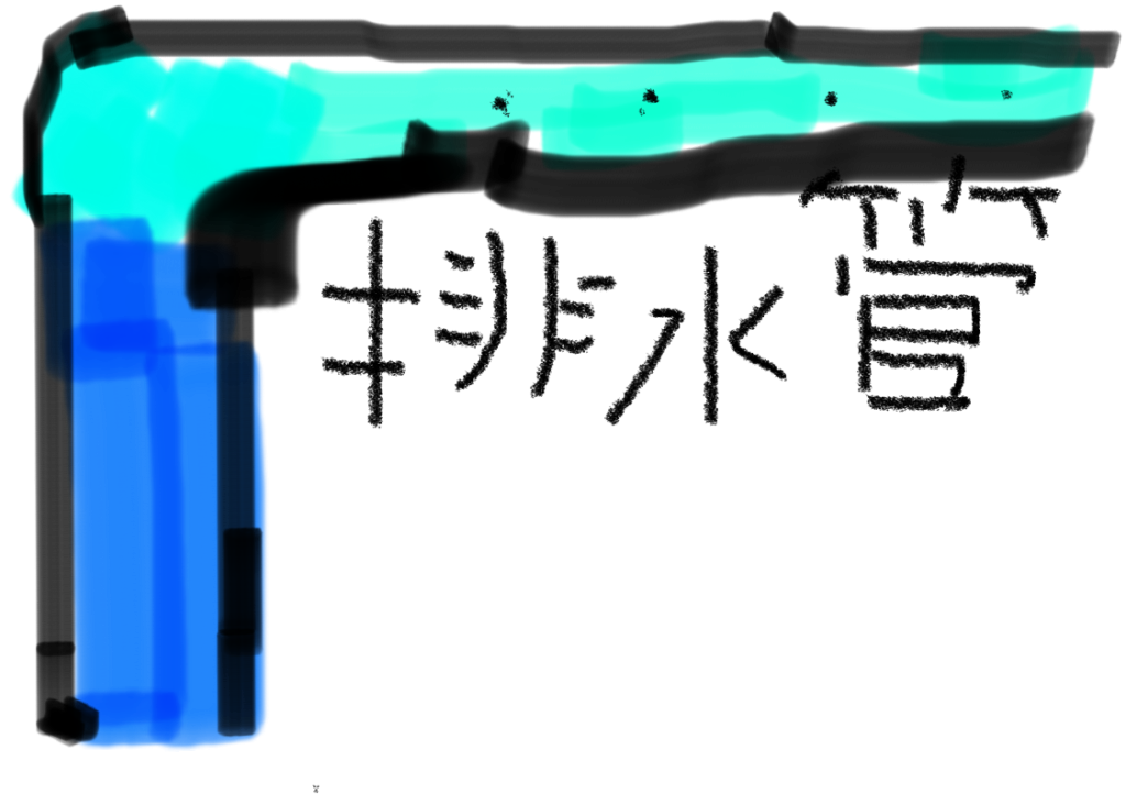 絵が下手ですみません。言い訳はタッチペンが慣れない…と言うことにしておいてください。この青色のところが呼水でくる水の位置です。そして電源🔌を入れると水色のところまで水が入ってきてキレイな水が排水されるということです。